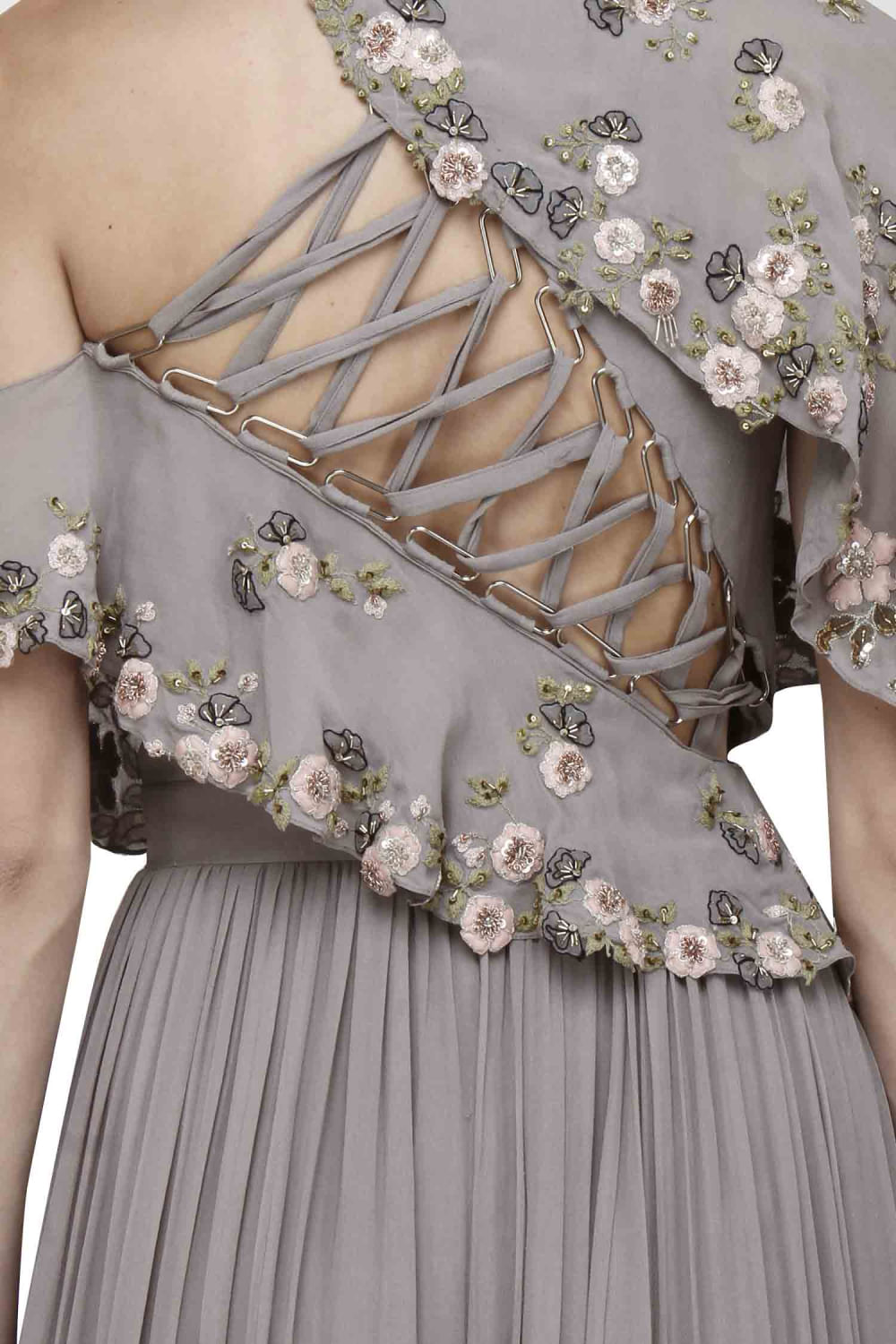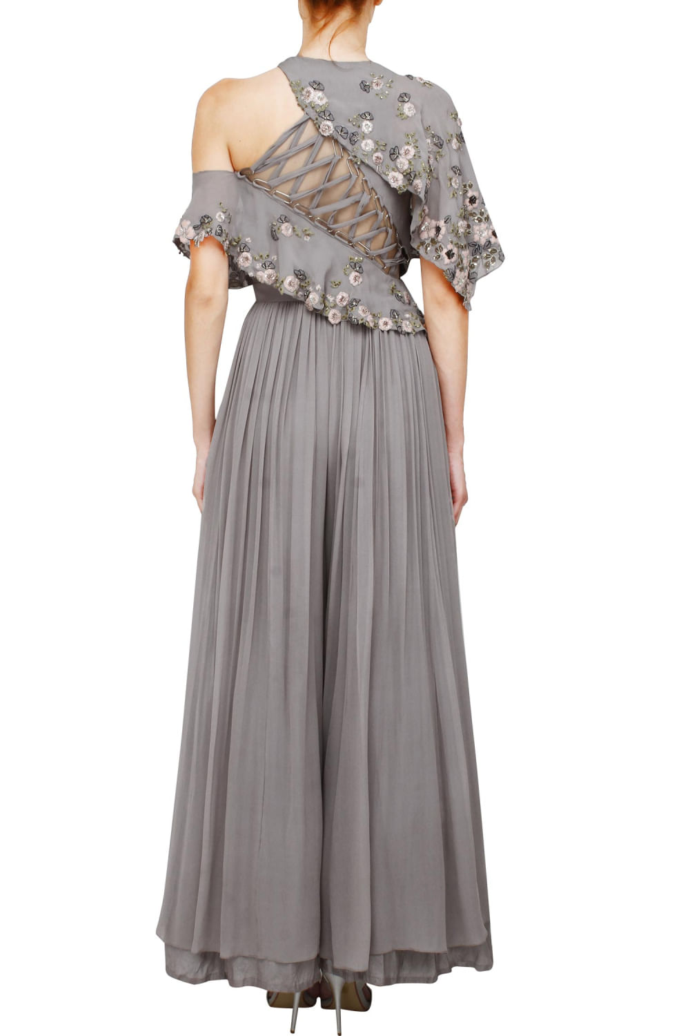 Ridhi Mehra gives the jumpsuit a whole new spin by creating a billowing delight that will make you look like something right out of a fairytale. You can wear this to a baby shower brunch or a mehndi lunch.