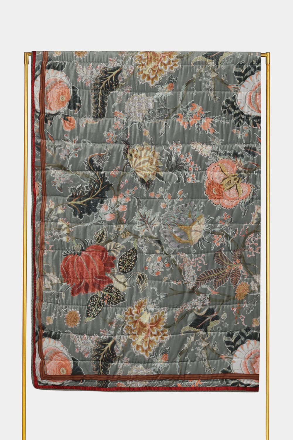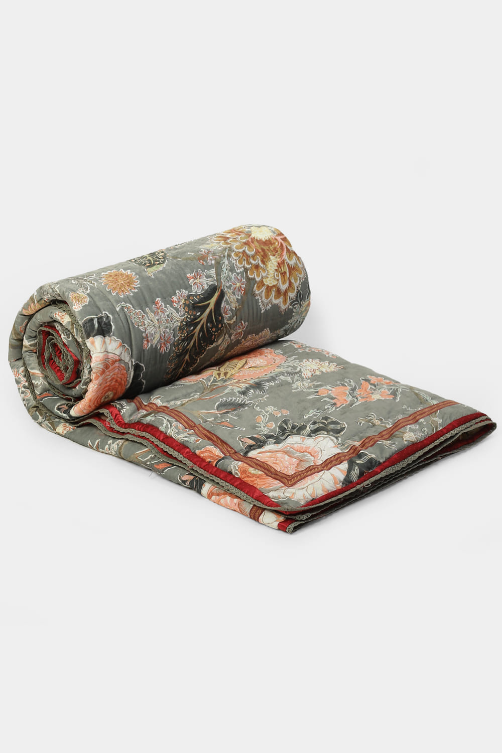 Ritu Kumar Home designs this double quilt customised poly velvet, featuring floral prints. This comfy and timeless quilt makes for a perfect gift.