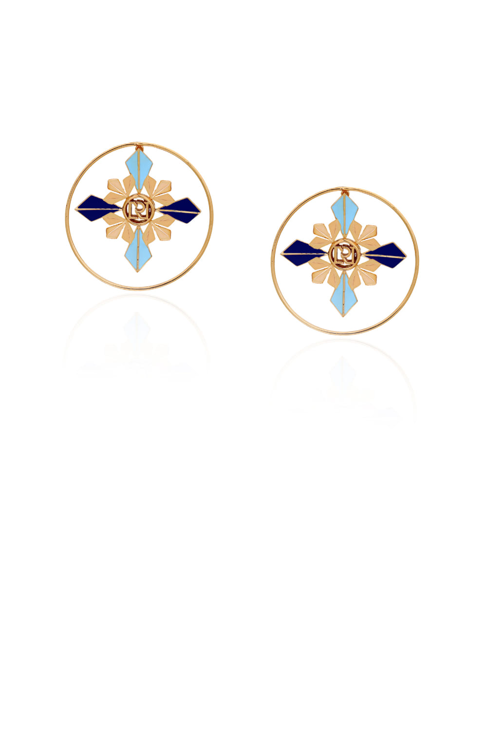 Blue enamel gold plated round studs