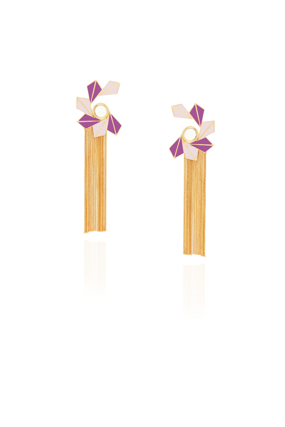 Mauve enamel and chain embellished earrings