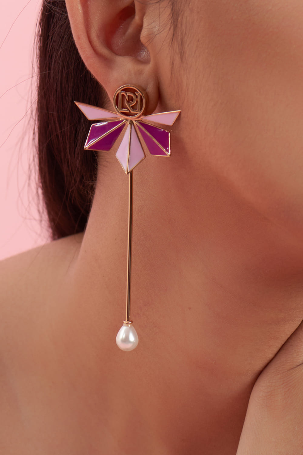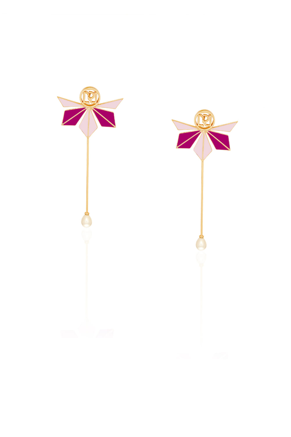 Ruhette designs this sophisticated pair of earrings crafted in 20k gold plating on brass, embellished with enamel detailing and a dainty pearl drop accent. Style them with a one-piece dress for a lunch date.