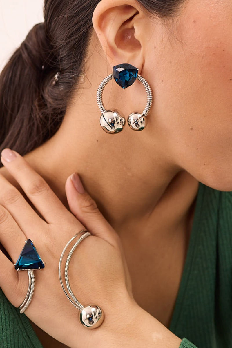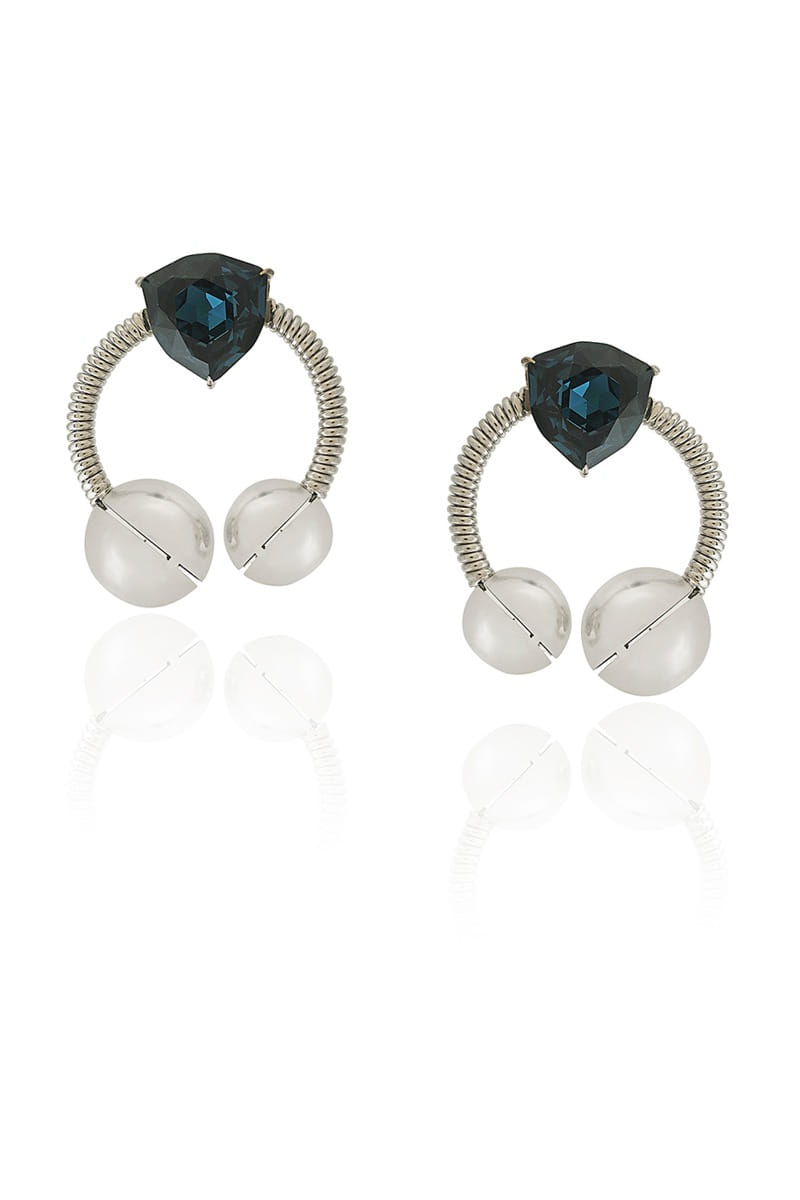 Ruhette designs this trendy pair of earrings rendered in brass adorned with Swarovski crystal embellishments featuring coil spring texture detailing and round shapes. Style them with a shimmery dress for a chic update.