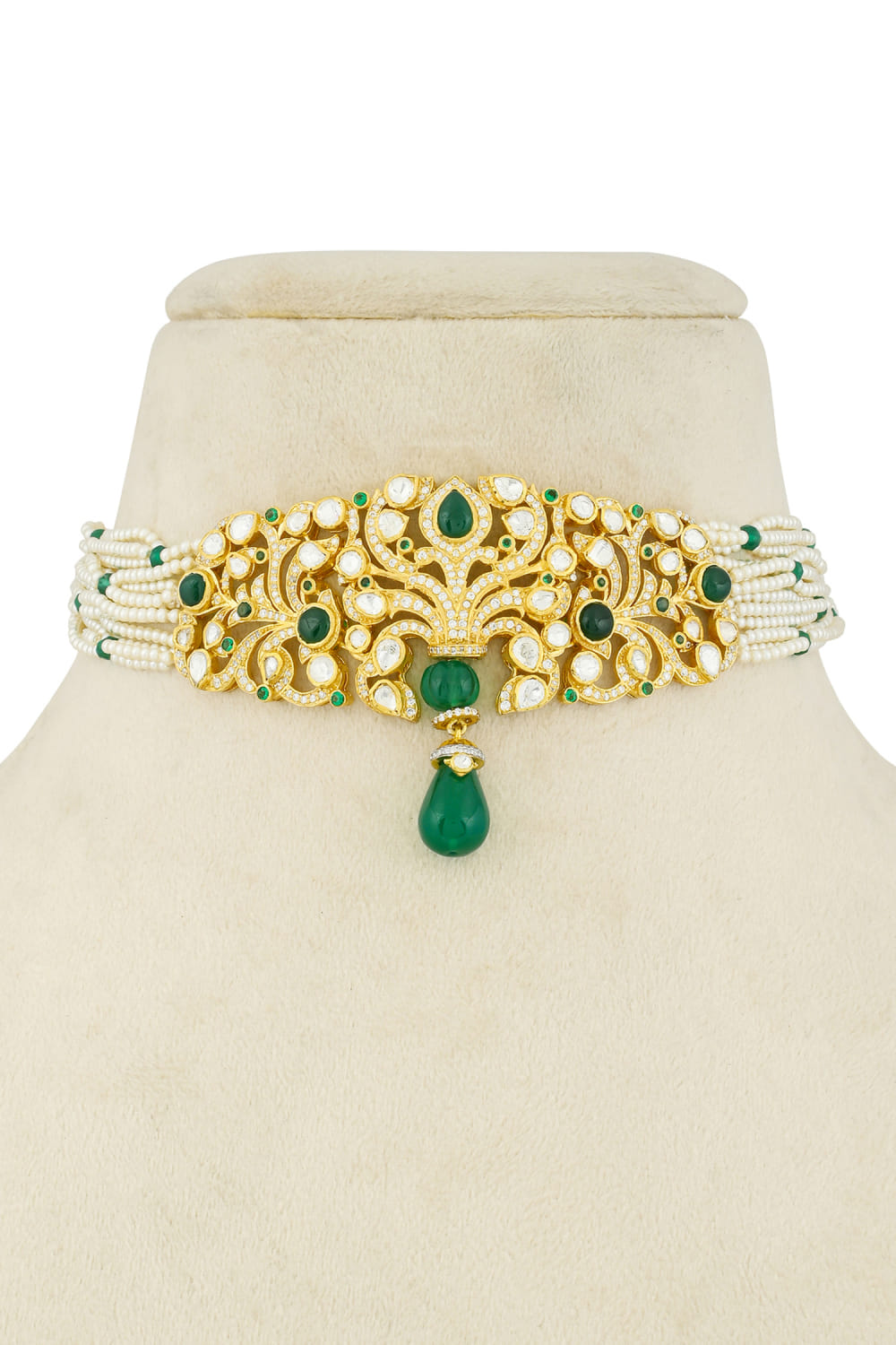White and green moissanite polki choker