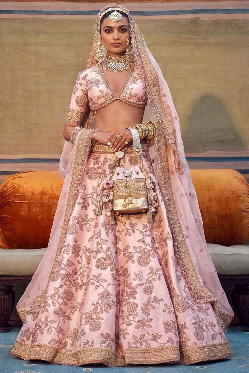 Pale pink embroidered lehenga set