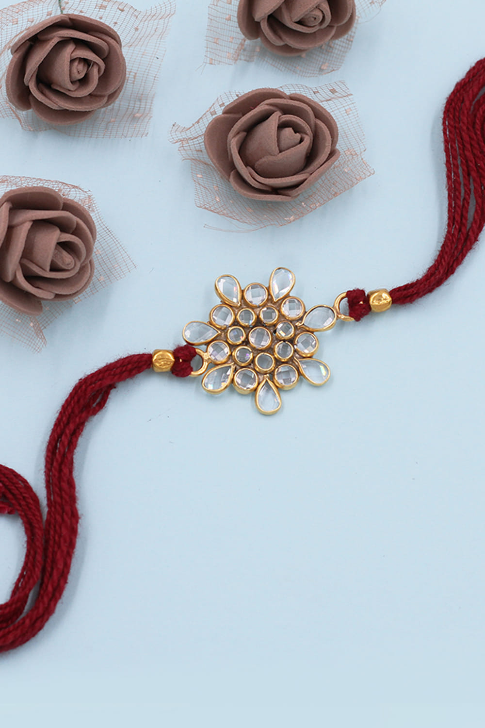 Sangeeta Boochra designs this resplendent rakhi for your brother embraced in 925 sterling silver enriched with checker stone embellishments.