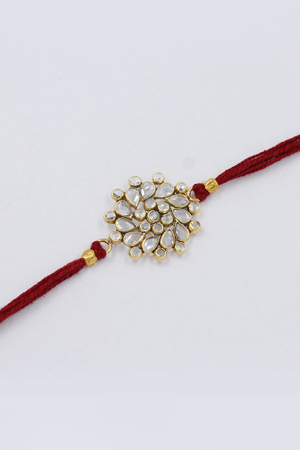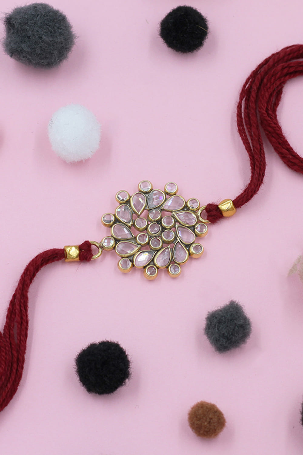 Sangeeta Boochra designs this magnificent rakhi for your brother customised in 925 sterling silver embedded with checker stone embellishments.