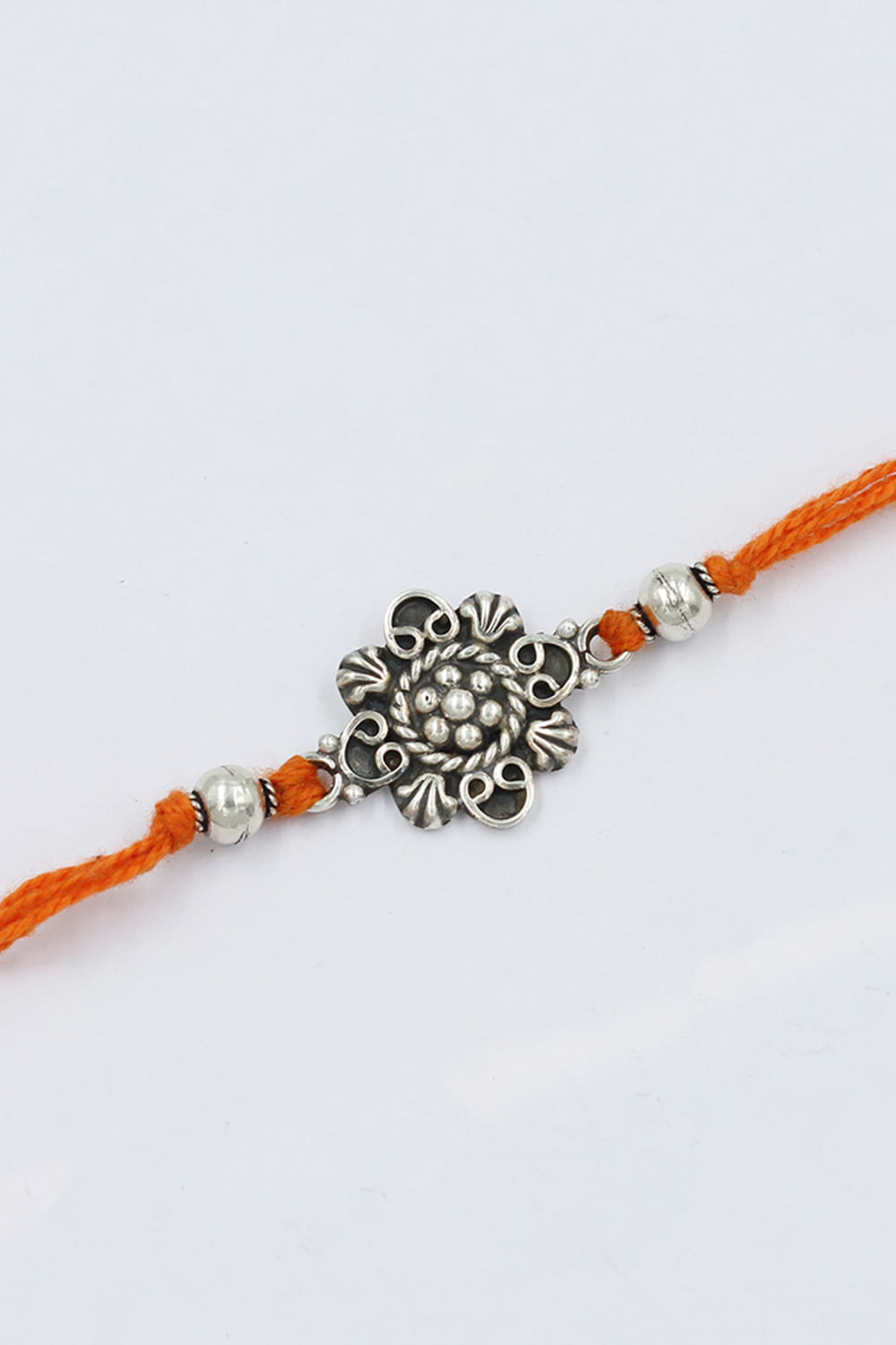 Sangeeta Boochra designs this marvellous rakhi for your brother customised in 925 sterling silver featuring intricate detailing and delicate embellishments in a floral shape.
