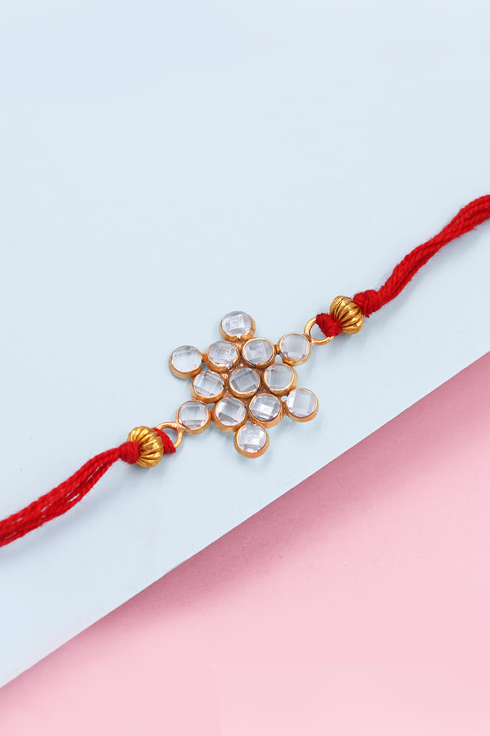 Sangeeta Boochra designs this festive-ready rakhi for your brother embraced in 925 sterling silver embedded with checker stone embellishments.