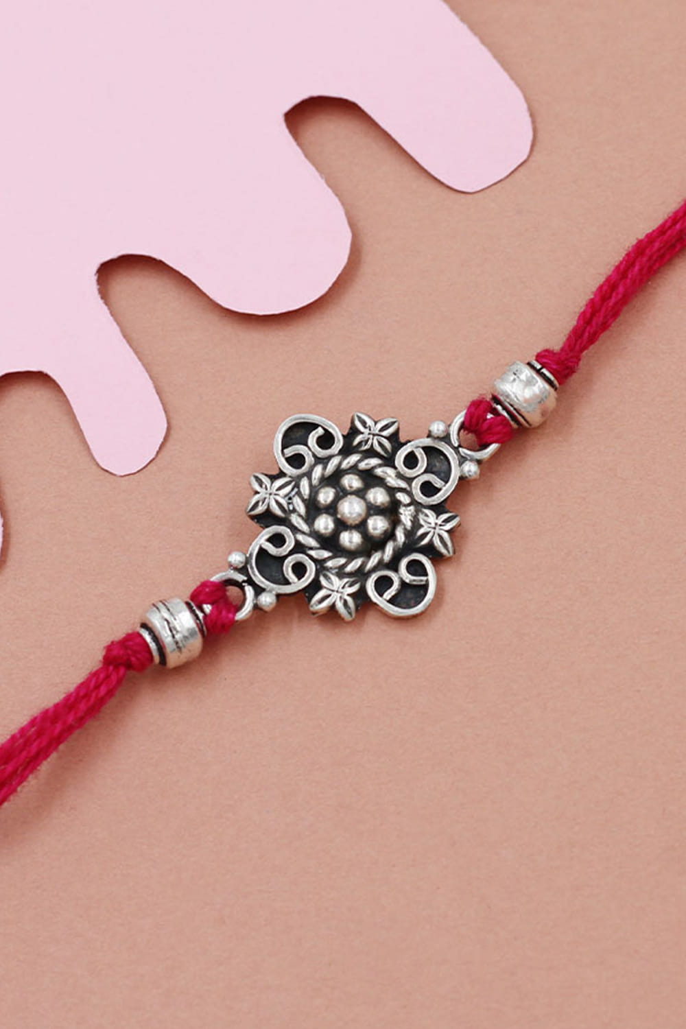 Sangeeta Boochra designs this alluring rakhi for your brother embraced in 925 sterling silver featuring intricate detailing and delicate embellishments.