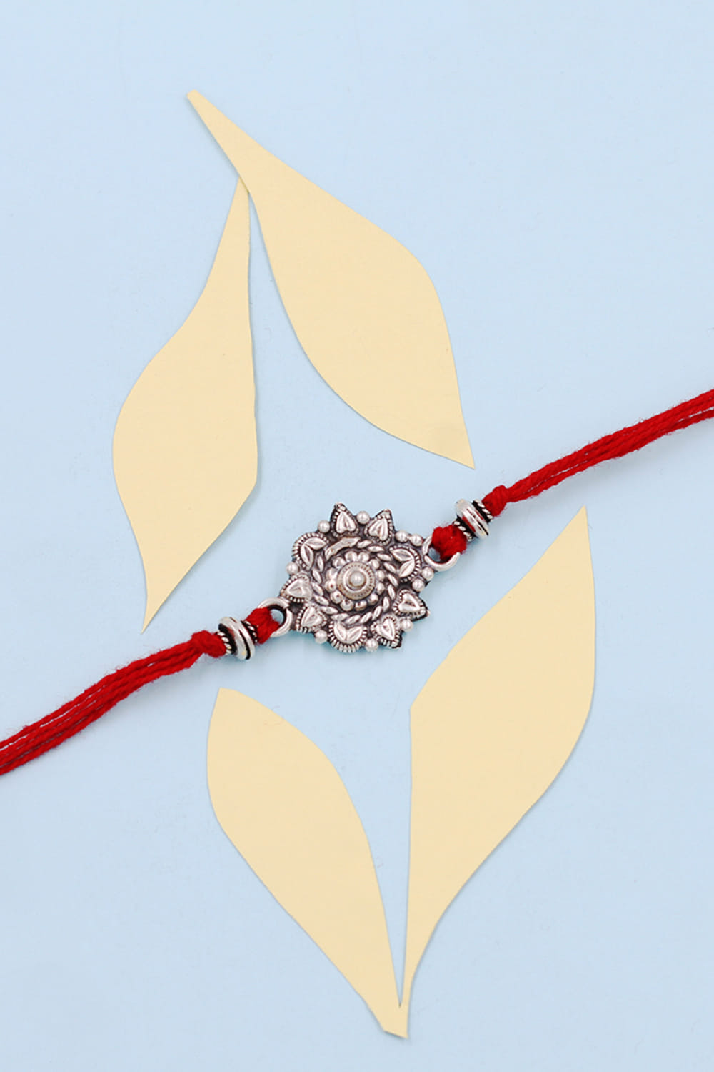 Sangeeta Boochra designs this marvellous rakhi for your brother rendered in 925 sterling silver featuring intricate detailing and delicate embellishments.