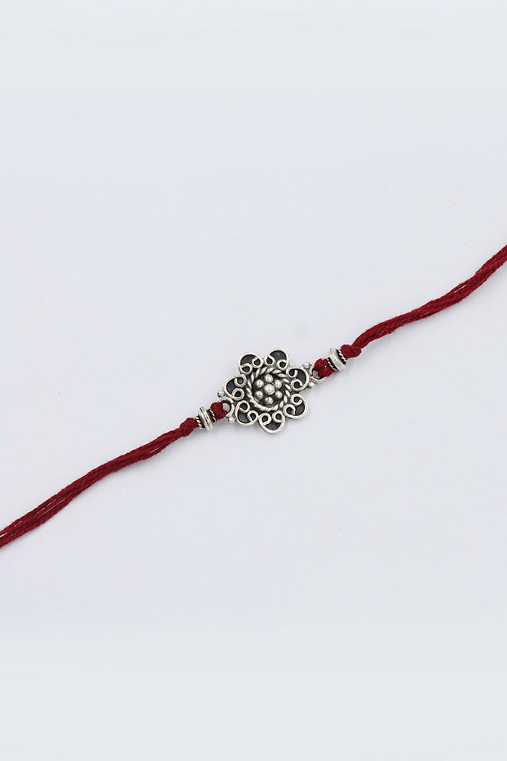 Sangeeta Boochra designs this magnificent rakhi for your brother embraced in 925 sterling silver featuring intricate detailing and delicate embellishments in a floral shape.