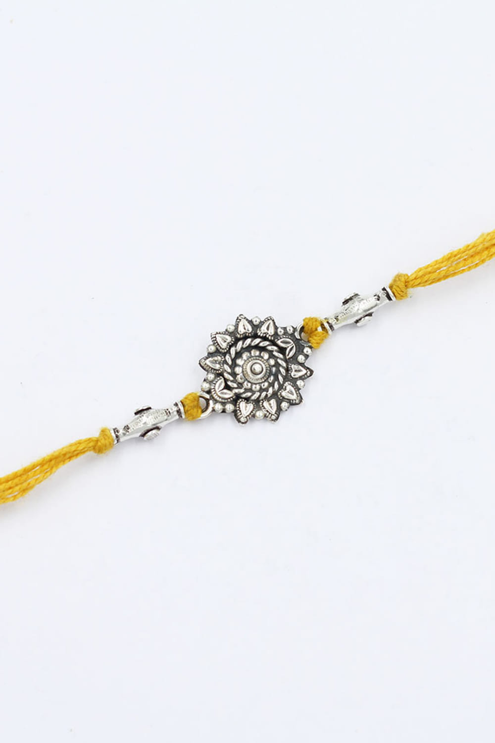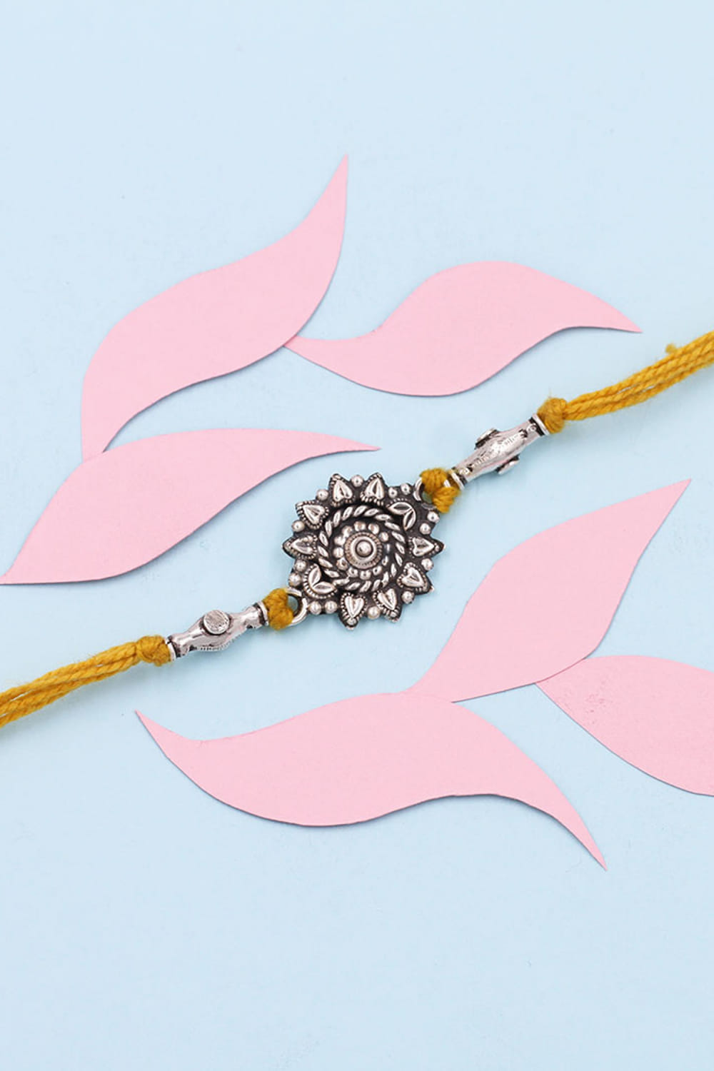 Sangeeta Boochra designs this alluring rakhi for your brother customised in 925 sterling silver featuring intricate detailing and delicate embellishments.
