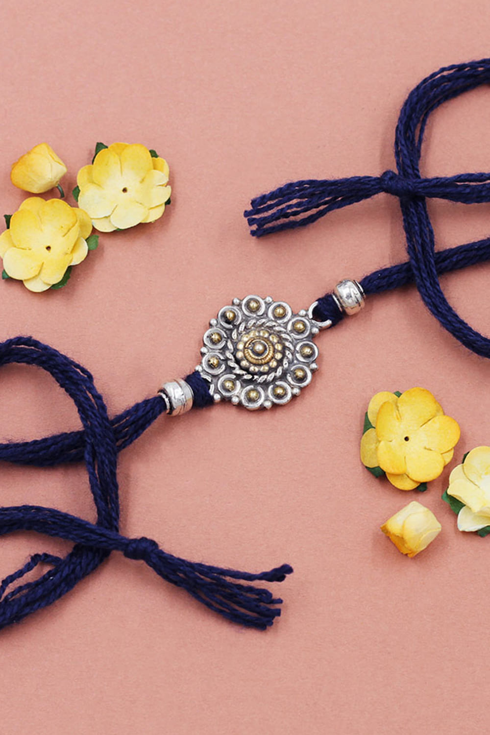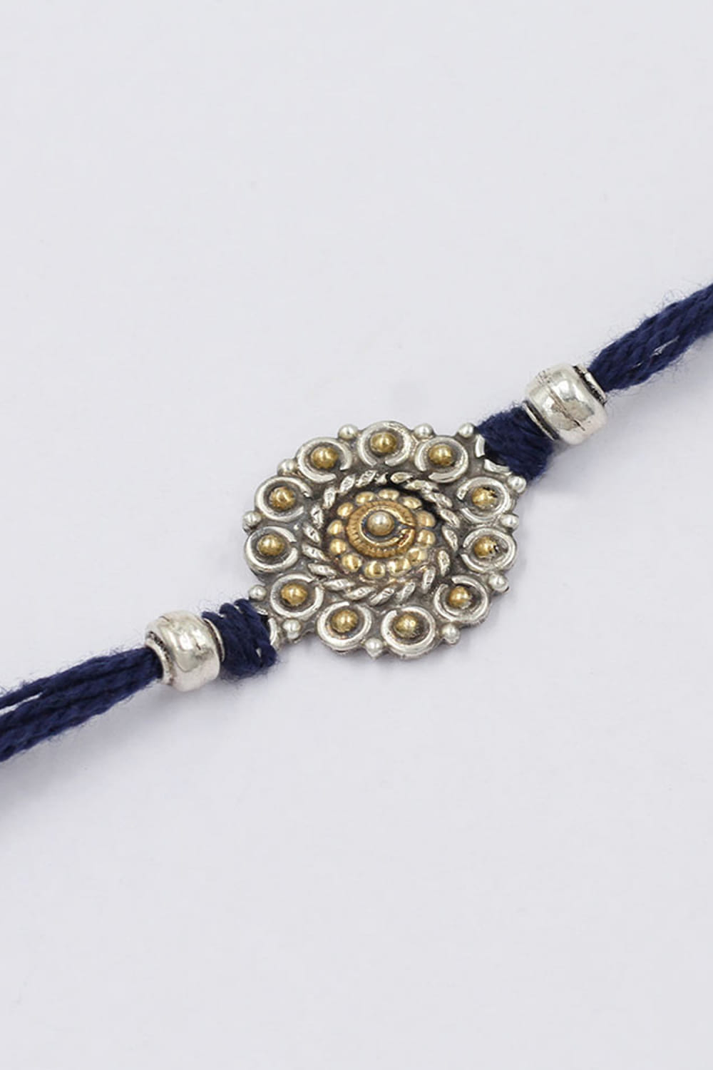 Sangeeta Boochra designs this ethereal rakhi for your brother customised in 925 sterling silver featuring intricate detailing and delicate embellishments in floral and circular shapes.