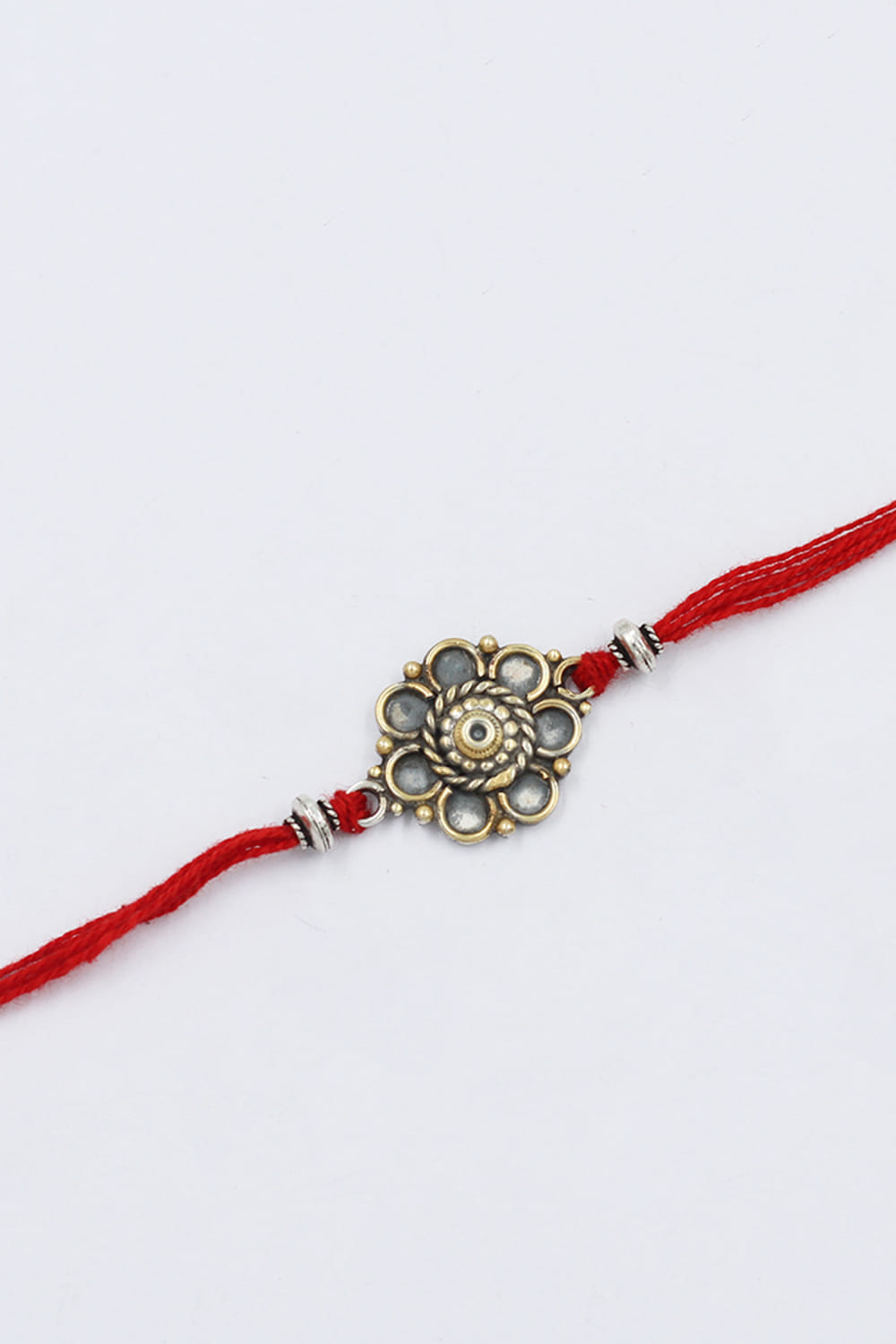 Sangeeta Boochra designs this ethereal rakhi for your brother rendered in 925 sterling silver featuring intricate detailing and delicate embellishments in a floral shape.