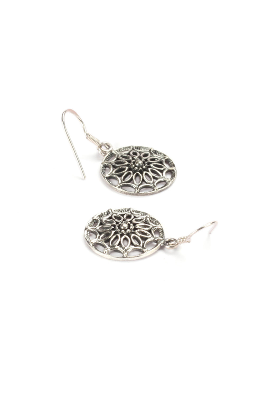 Silver floral carved earrings