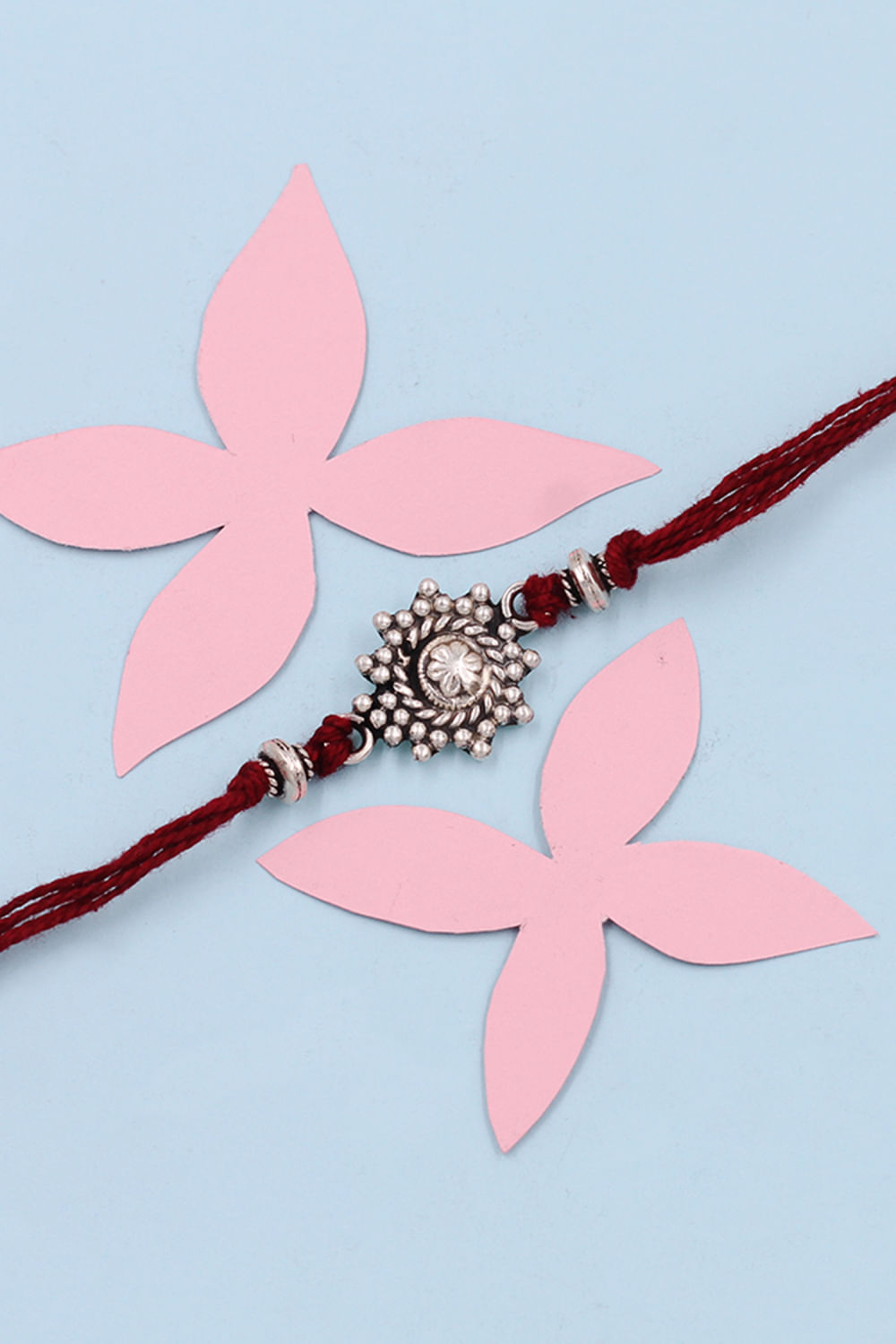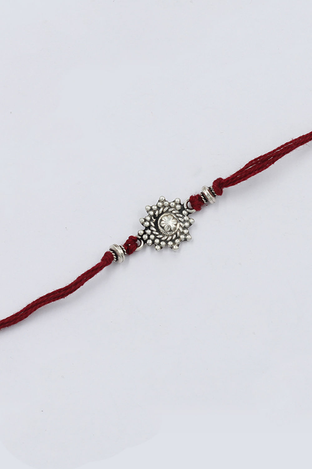 Sangeeta Boochra designs this alluring rakhi for your brother rendered in 925 sterling silver featuring intricate detailing and delicate embellishments in geometric and floral shapes.