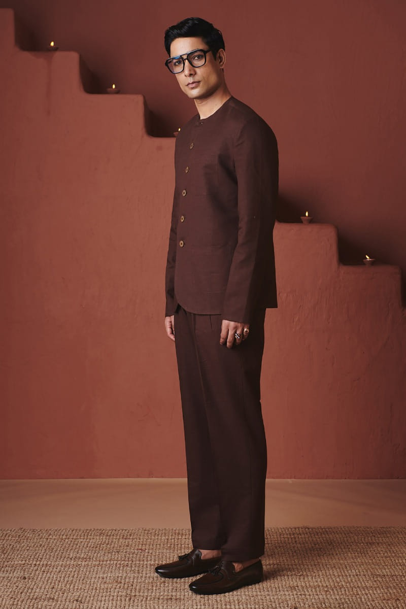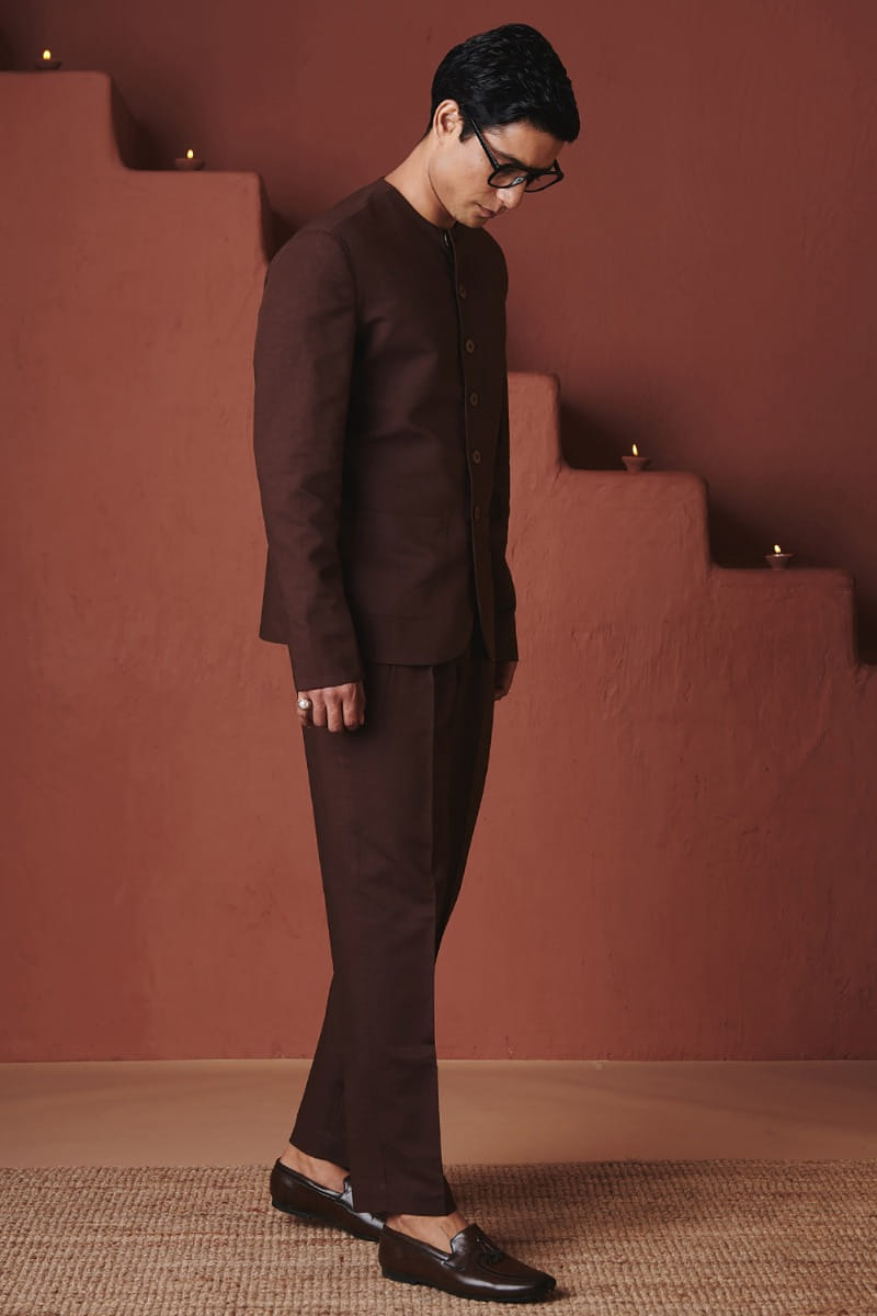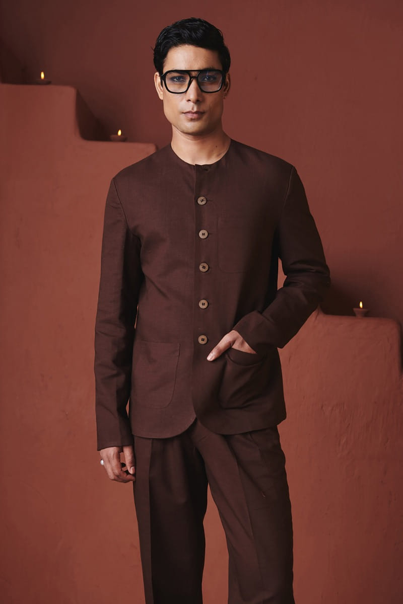Saphed designs this tailored jacket crafted in cotton linen. Style it with straight trousers for refined dressing. The pants here are shown for styling purposes only.