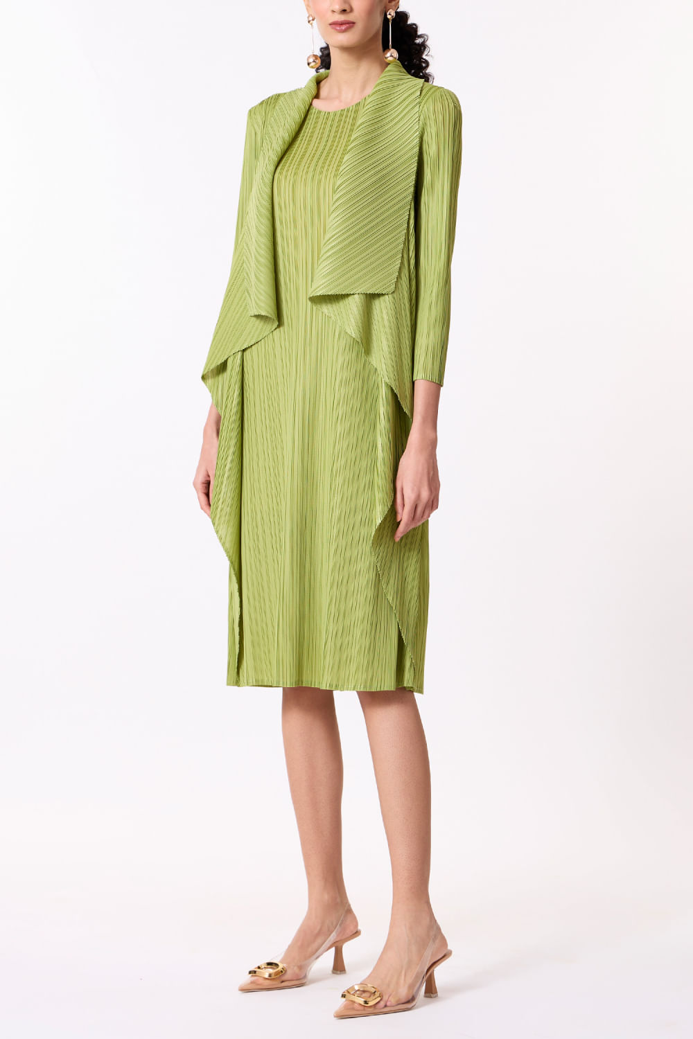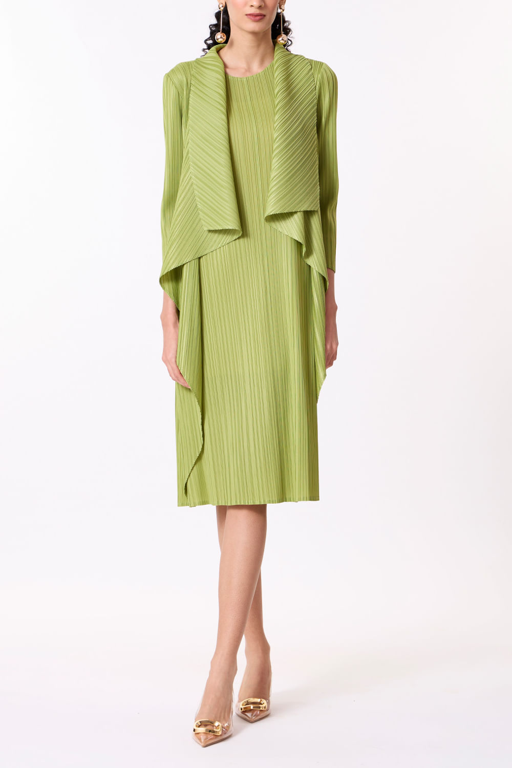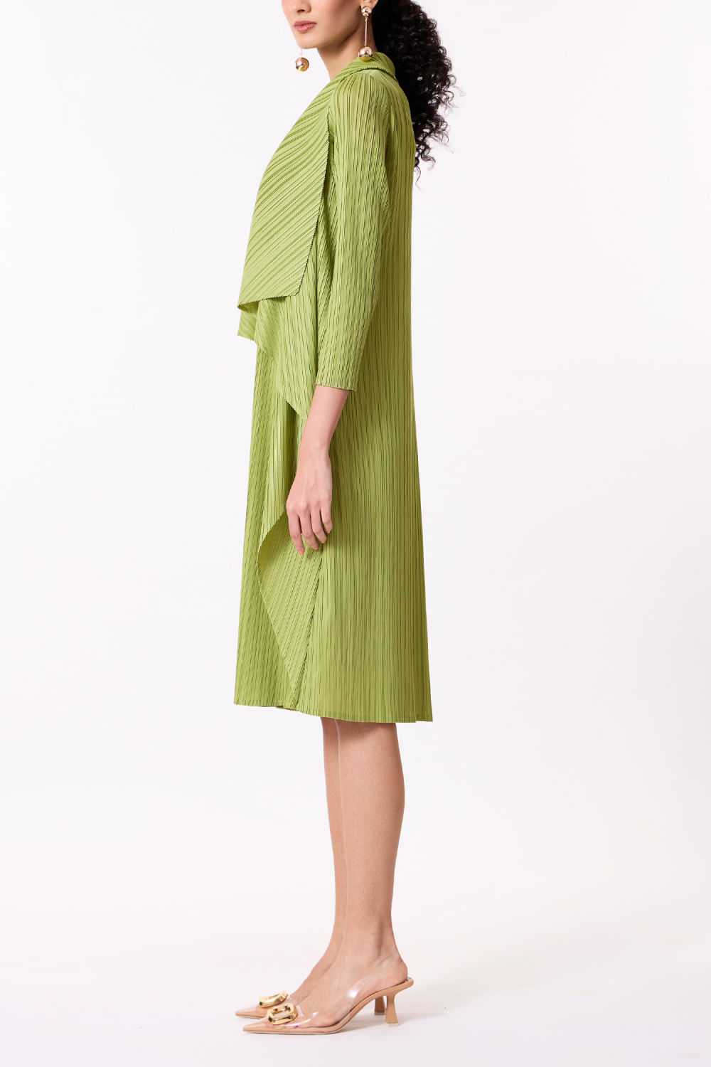 Care : Coldwater hand wash with gentle detergent. Flat dry. Roll in the direction of the pleats and store. Steam using a hand-held steaming iron in the direction of the pleats. Maintain the steam head 2 inches away from the clothing.