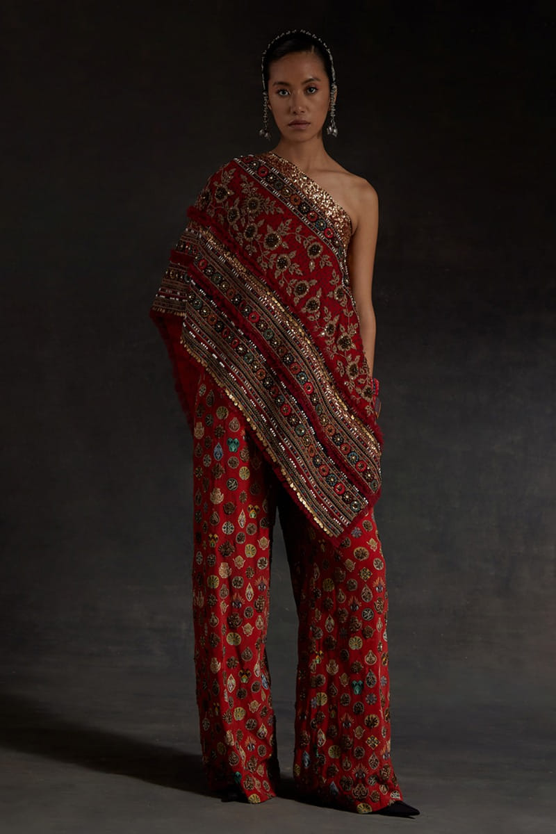 Composition : Blended Silk Care : Avoid exposure to water. Store in fabric pouch.
