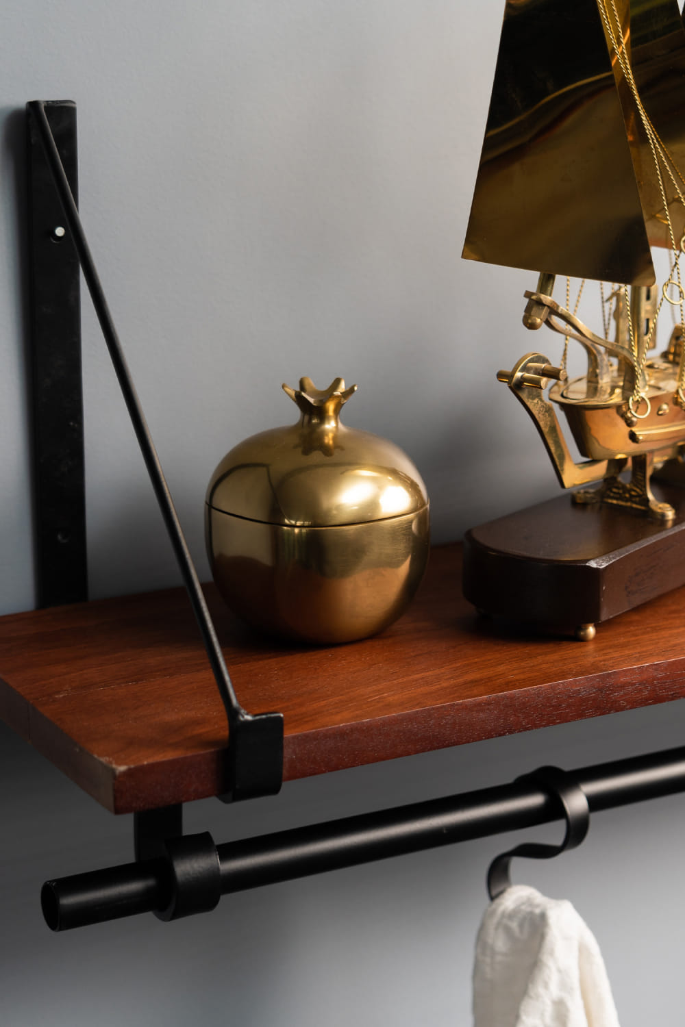 Brown floating shelf and loops