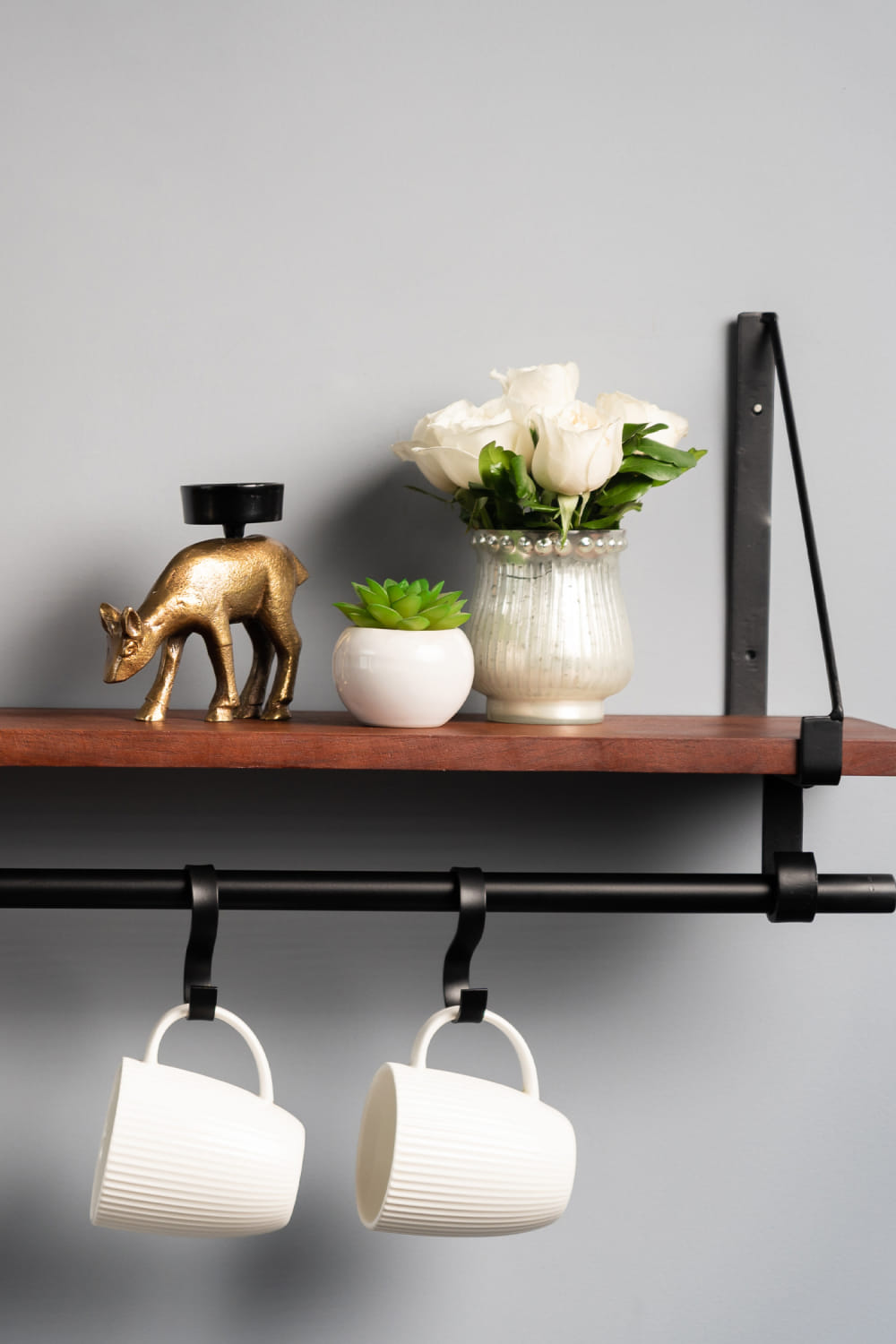 S.G Home designs this utility floating shelf crafted in metal and wood with loops. Display it to store your fancy cutlery.