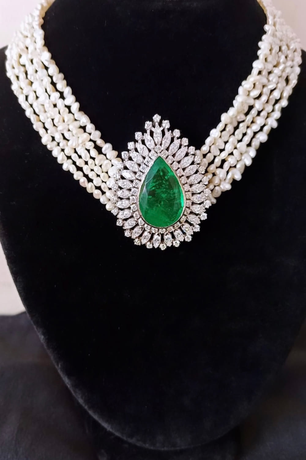 White and green cubic zirconia necklace