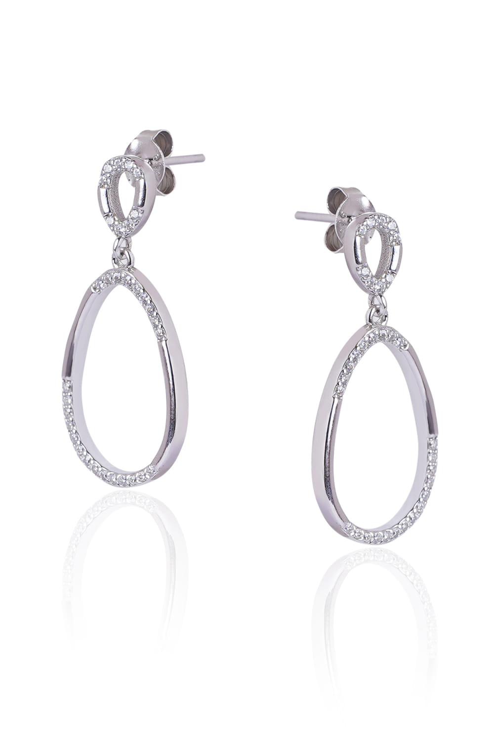 Sica Jewellery designs this stunning pair of silver drop earrings enhanced with embellished detailing in pear shapes. Style them with a satin dress for a dinner date.