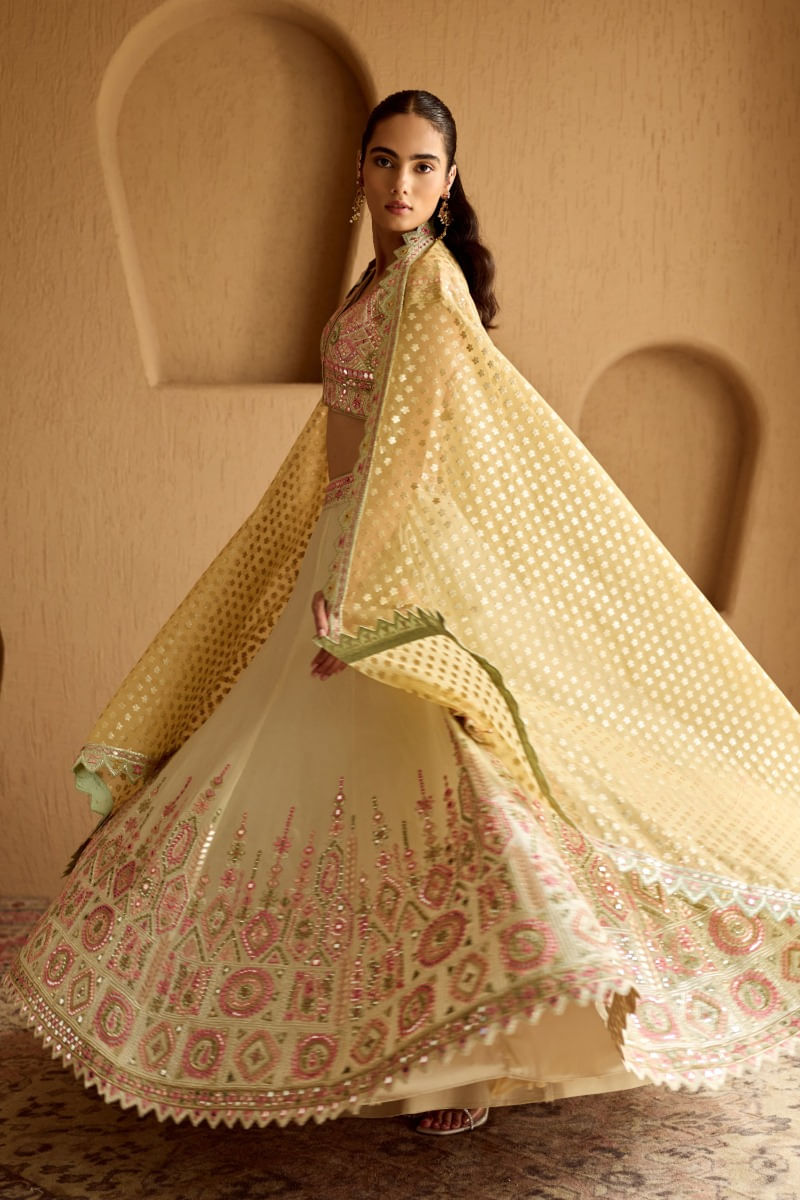 | A+Co Edits | Bridesmaids Glam, Lehengas Under $2000, Occasion wear Lehengas, Pastel Lehengas |