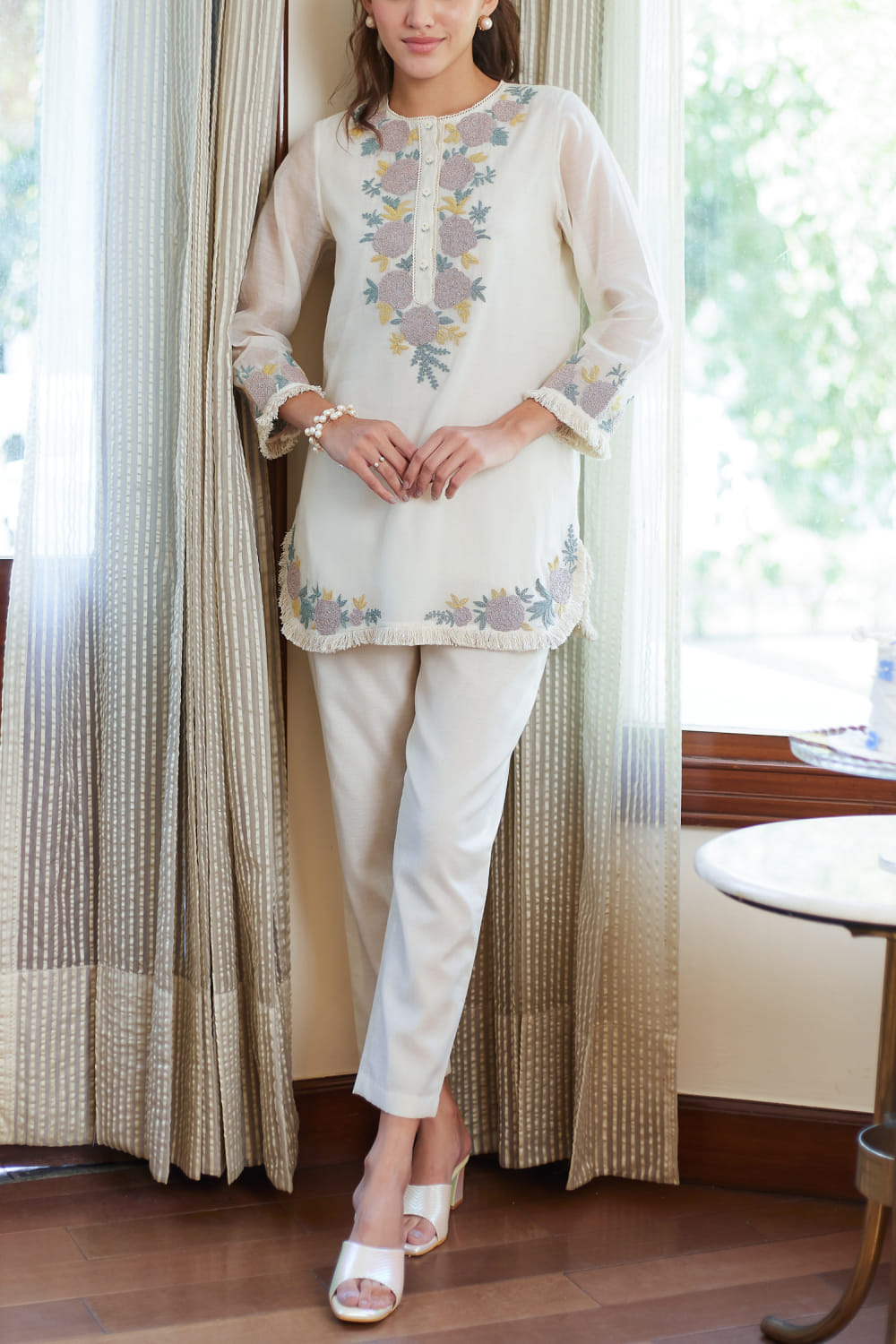 Ivory floral embroidered kurta set