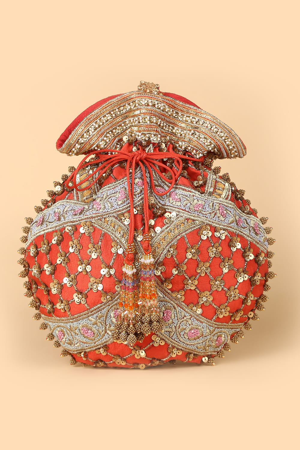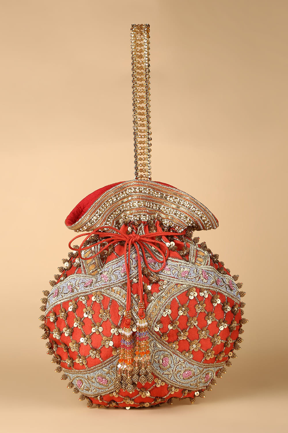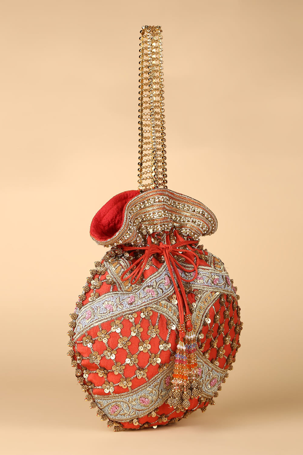 Red hand embroidered potli bag