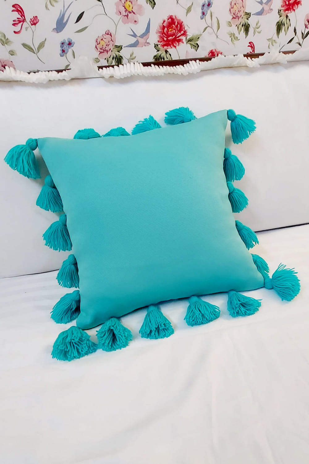 Throw Pillow designs this bohemian-inspired square cushion cover crafted in premium décor fabric embellished with tassels detailing. Add a fun touch to your home décor.