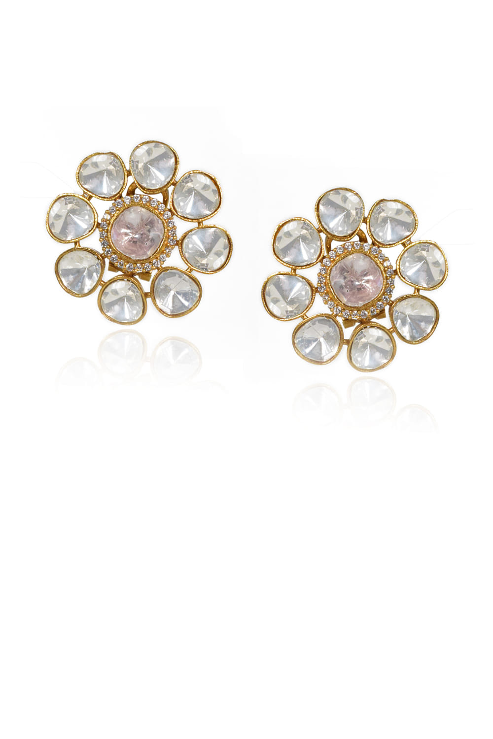 Gold faux polki stud earrings