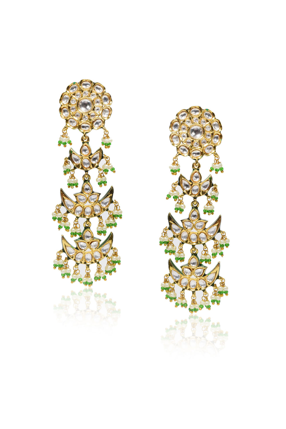 Green and white kundan earrings