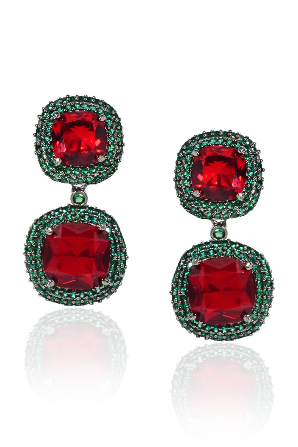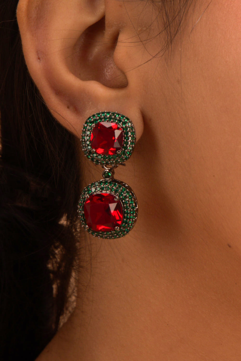 Red stone studded drop earrings