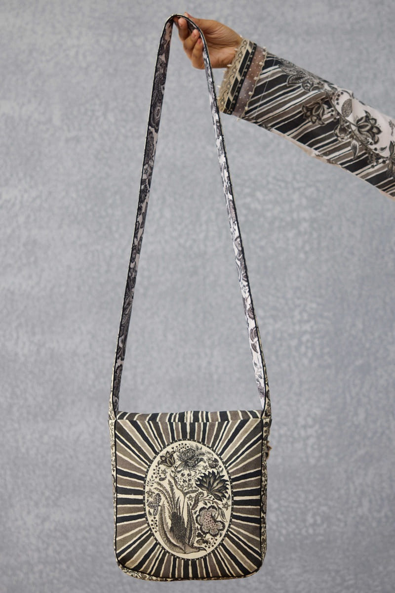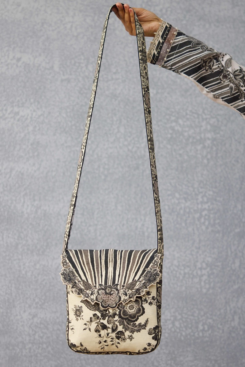 Black and white floral printed sling bag