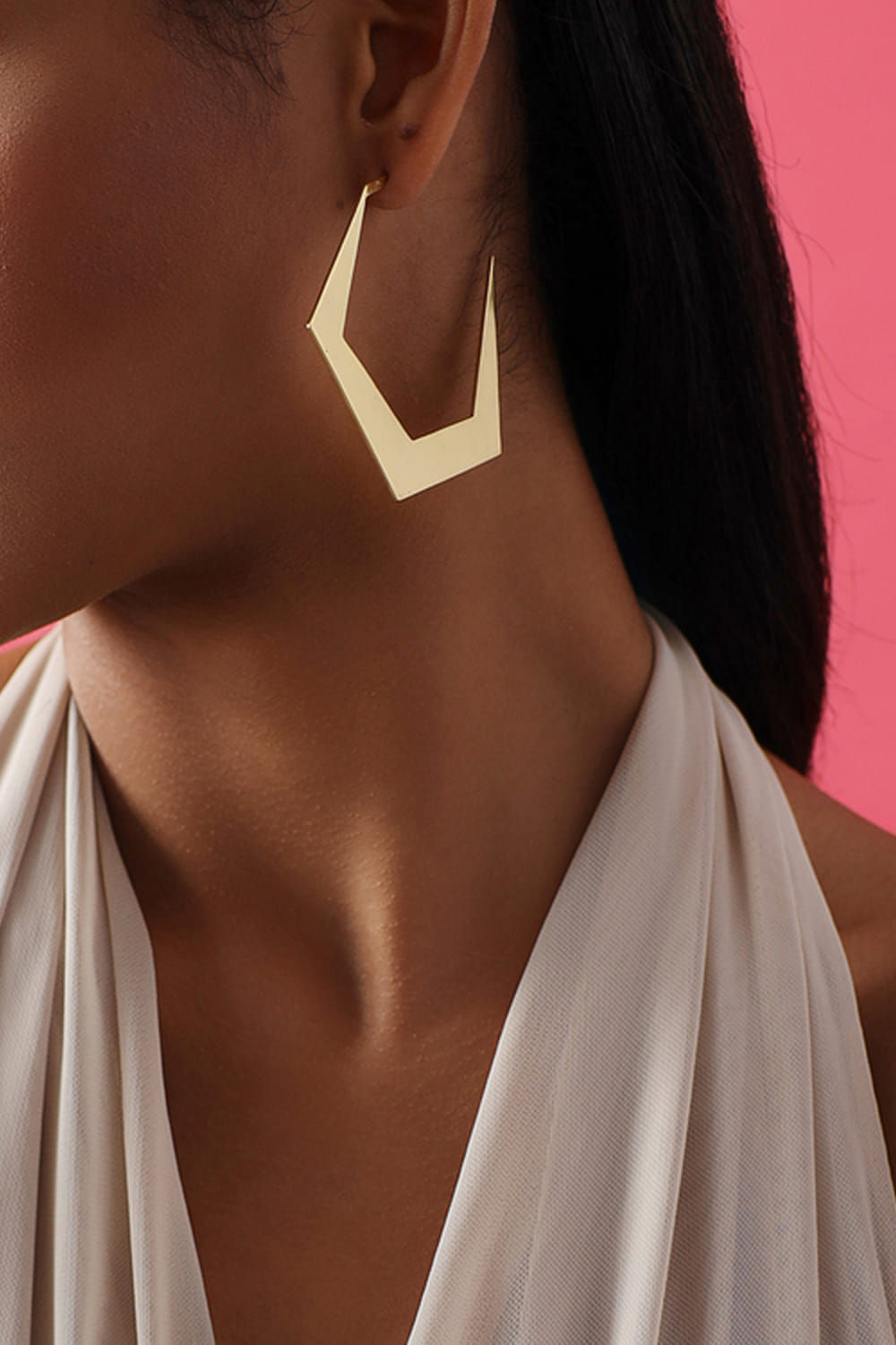 Varnika Arora designs this edgy pair of earrings crafted in 22K gold plating featuring a geometric shape. Style them with a corset top and skirt for the party.