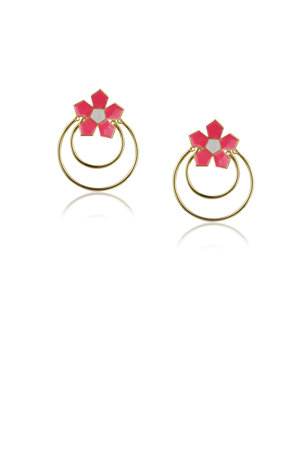 Pink enamel floral round earrings