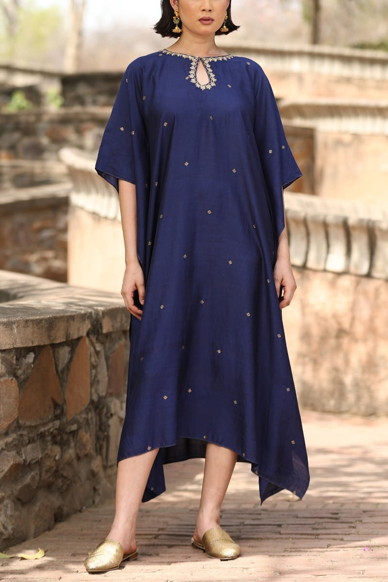 Blue floral embroidered woven kaftan